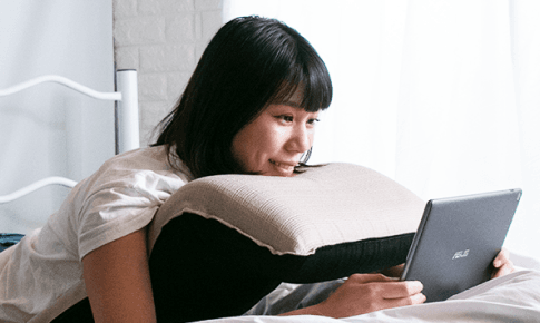 ベッドの上でリクライニングしながら